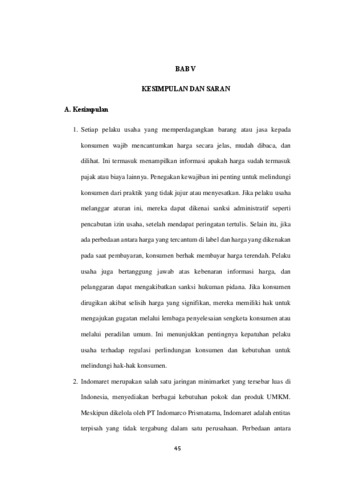 Sari, Novita (2024) TANGGUNG JAWAB PELAKU USAHA INDOMARET TERHADAP KONSUMEN YANG MENGALAMI PERBEDAAN NILAI ANTARA LEBEL HARGA BARANG DAN KASIR BERDASARKAN UNDANG-UNDANG NOMOR 8 TAHUN 1999 TENTANGPERLINDUNGAN KONSUMEN. Undergraduate thesis, UNIVERSITAS SINTUWU MAROSO.