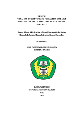 BUNGASAWA, MOH. FAQIH HAKKAMY (2024) TINJAUAN HUKUM TENTANG NETRALITAS APARATUR SIPIL NEGARA DALAM PEMILIHAN KEPALA DAERAH (PILKADA). Undergraduate thesis, UNIVERSITAS SINTUWU MAROSO.