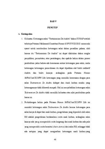 Cuyuw, Regita Nuranisa (2024) ANALISIS KETERANGAN SAKSI TESTIMONIUM DE AUDITU DALAM SIDANG PERKARA PENCABULAN OLEH ORANG TUA KANDUNG. Undergraduate thesis, UNIVERSITAS SINTUWU MAROSO.