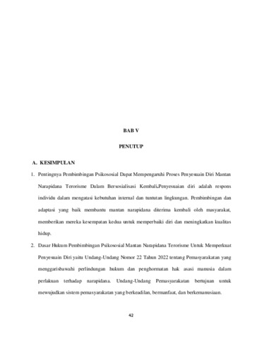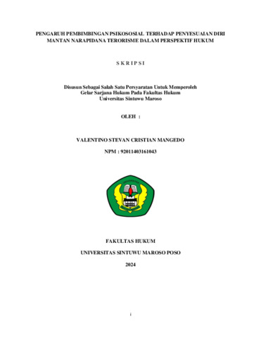 Mangedo, Valentino Stevan Cristian (2024) PENGARUH PEMBIMBINGAN PSIKOSOSIAL TERHADAP PENYESUAIAN DIRI MANTAN NARAPIDANA TERORISME DALAM PERSPEKTIF HUKUM. Undergraduate thesis, UNIVERSITAS SINTUWU MAROSO.