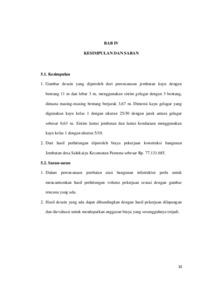 Desa Salukaiya adalah salah satu desa yang ada di Kecamatan Pamona Barat, dimana sebagai besar penduduk desa hidup dalam usaha pertanian baik petani sawah maupun petani kebun. Adanya akses jalan menuju lokasi perkebunan akan sangat menunjang hasil usaha dari para petani. Banyak program pemerintah desa untuk meningkatkan hasil usaha tani yaitu dengan membangun infrastruktur jalan menuju ke kebun masyarakat. Tentunya jalan yang dibangun biasanya harus melintas pada sungai atau lembah-lembah, sehingga perlu dibangun jembatan pelintas. Salah satu jembatan yang dianggap ekonomis untuk akses ke jalan desa atau jalan tani adalah jembatan kayu. Permasalahan dari penelitian ini adalah bagaimana gambar desain jembatan kayu Desa Salukaiya. Berapa besar rencana anggaran pembangunan jembatan kayu desa Salukaiya Kecamatan Pamona Barat. Tujuan dari penelitian ini adalah membuat gambar desain jembatan kayu dan menghitung besar rencana anggaran pembangunan jembatan kayu desa Salukaiya Kecamatan Pamona Barat. Lokasi penelit ian dilakukan pada rencana pekerjaan Pembangunan Jembatan Kayu Desa Salukaiya Kecamatan Pamona Barat Kabupaten Poso. Dimana metode penelitian yang dilakukan dengan mengumpulkan data penunjang lalu melakukan desain gambar jembatan, perhitungan volume, perhitungan kebutuhan bahan dan upah dan membuat rencana anggaran biaya yang dibutuhkan. Hasil dari penelitian yaitu gambar desain yang diperoleh dari perencanaan jembatan kayu dengan bentang 11 m dan lebar 3 m, menggunakan sistim gelagar dengan 3 bentang, dimana masing-masing bentang berjarak 3,67 m. Dimensi kayu gelagar yang digunakan kayu kelas 1 dengan ukuran 25/30 dengan jarak antara gelagar sebesar 0,63 m. Sistim lantai jembatan dan lantai kendaraan menggunakan kayu kelas 1 dengan ukuran 5/10. Dari hasil perhitungan diperoleh biaya pekerjaan konstruksi bangunan Jembatan desa Salukaiya Kecamatan Pamona Barat sebesar Rp. 77.131.685.